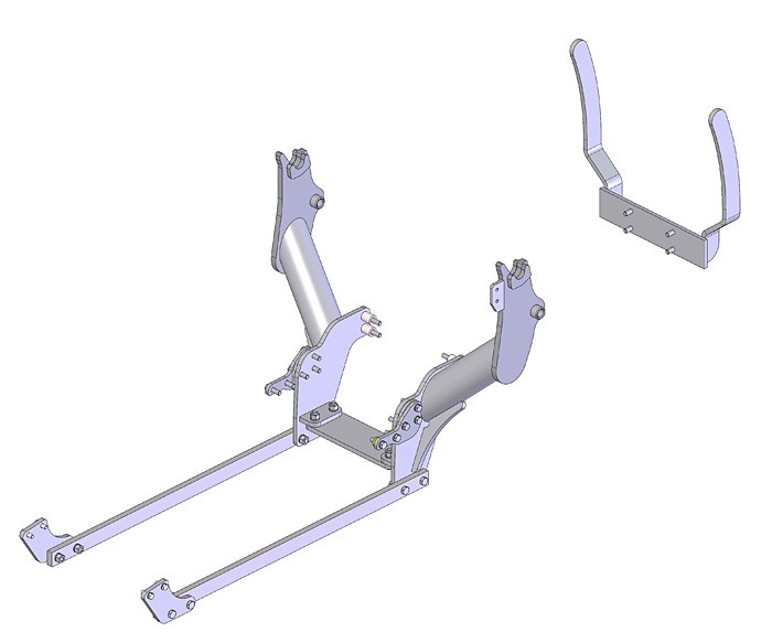 Anbaurahmen für Frontlader STOLL FC450P und FC550P, inklusive Hinterachs-Abstützung und Hydraulikleitungen zum Anschluss am Traktor.