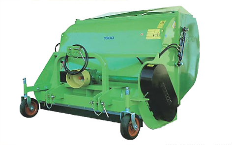 Profi - Mähcontainer mit Dreipunkt Kat. II, Arbeitsbreite 160 cm, Grasaufnahmebehälter mit Bodenentleerung, Behältervolumen ca. 1.500 Liter, wahlweise 48 Spachtelmesser oder Hammerschlegel, inkl. Gelenkwelle.