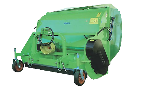 Profi - Mähcontainer mit Dreipunkt Kat. II, Arbeitsbreite 180 cm, Grasaufnahmebehälter mit Bodenentleerung, Behältervolumen ca. 1.800 Liter, wahlweise 58 Spachtelmesser oder Hammerschlegel, inkl. Gelenkwelle.