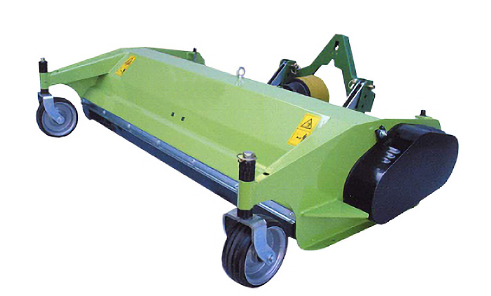Frontschlegelmäher 180 cm Schnittbreite, Kuppeldreieck Kat. 0 oder Dreipunkt Kat. I, für Frontzapfwellendrehzahl wahlweise 540 / 1.000 / 2.000 U/min, rechts oder linksdrehend, Gelenkwelle, Getriebe mit Freilauf, mit Y-Messern. Spachtelmesser oder leichte Hammerschlegel gegen Aufpreis. Auch mit 135 mm langen Vertikutiermessern lieferbar. Laufwalze und Fronträder Laufwalze und Fronträder höhenverstellbar, produziert in Europa mit CE.