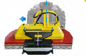 Innovativer Sichelmäher zum Heckanbau mit einstellbarer Arbeitsbreite durch hydraulischen Verstellung von 190-260 cm und zusätzlicher Seitenverschiebung um 15 cm nach links und nach rechts.